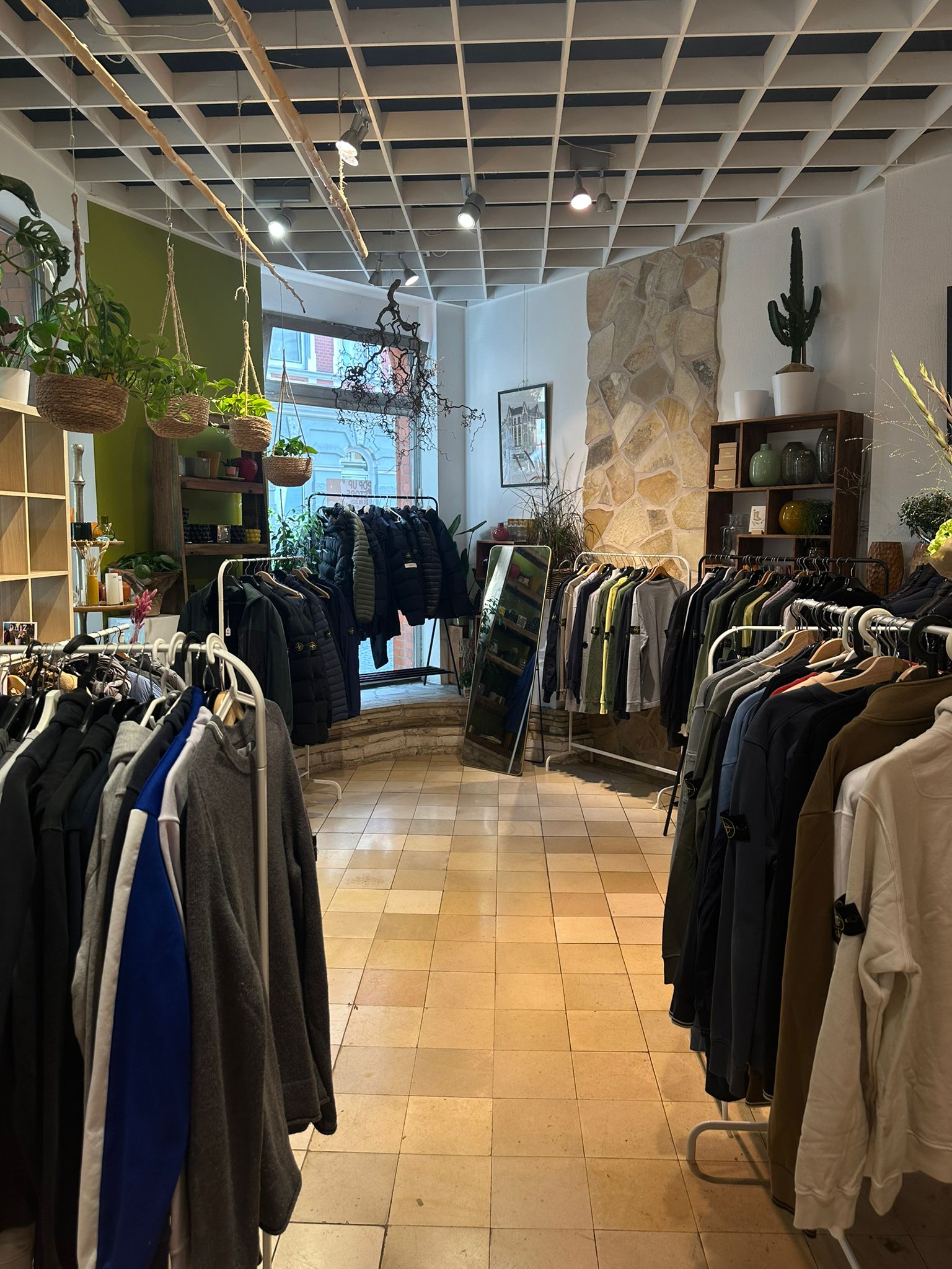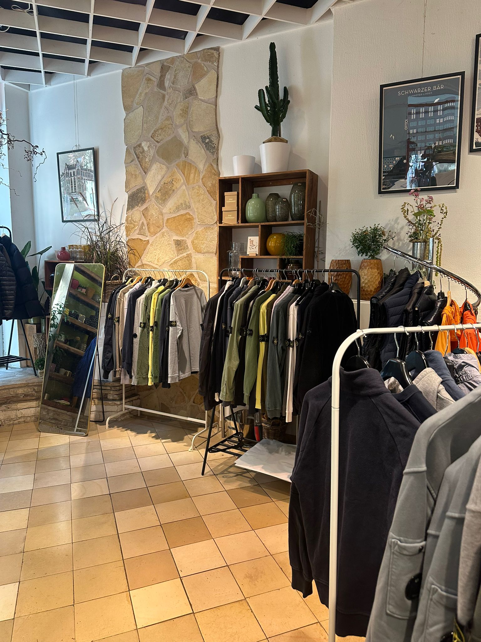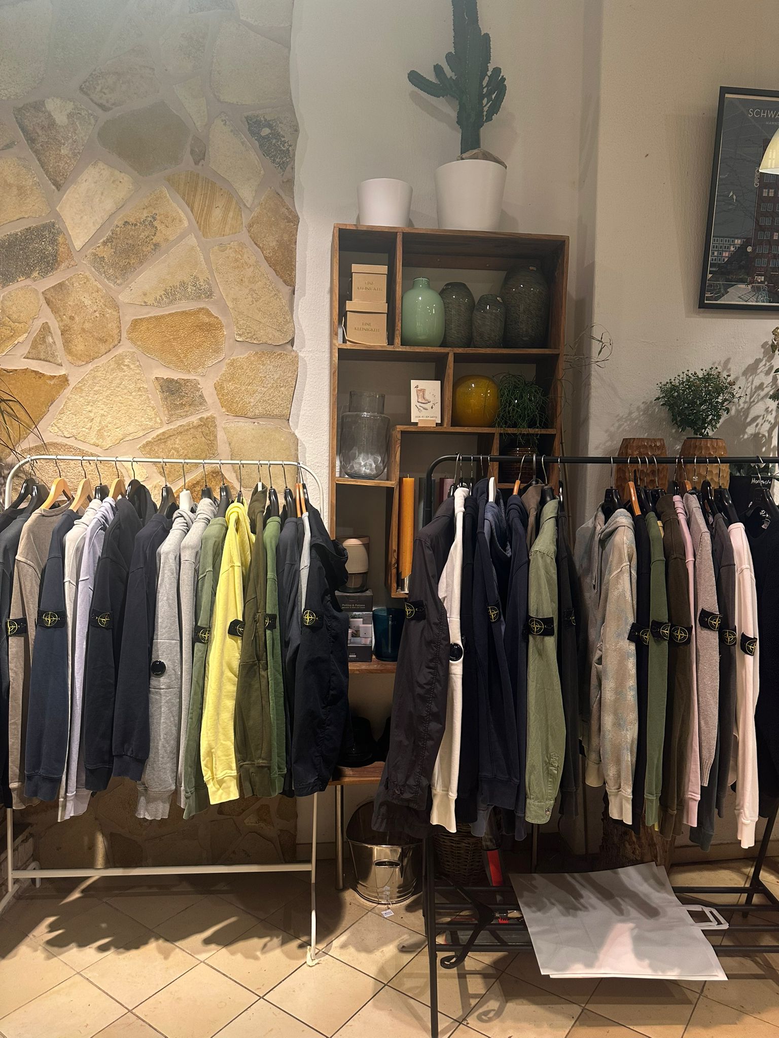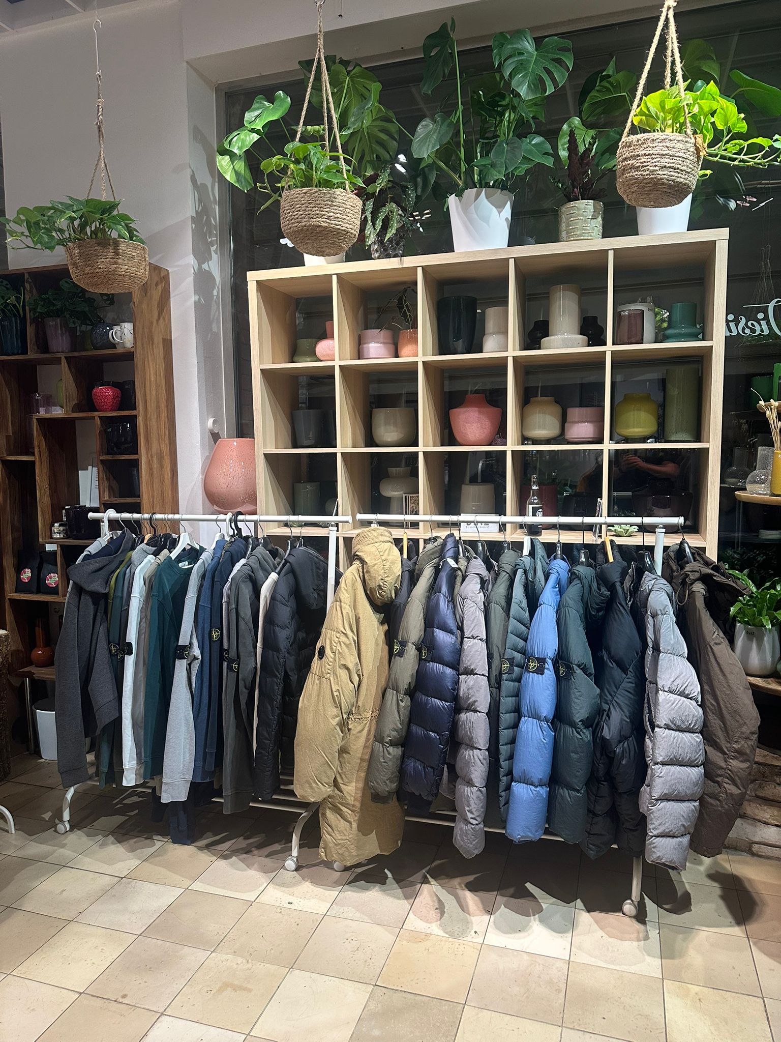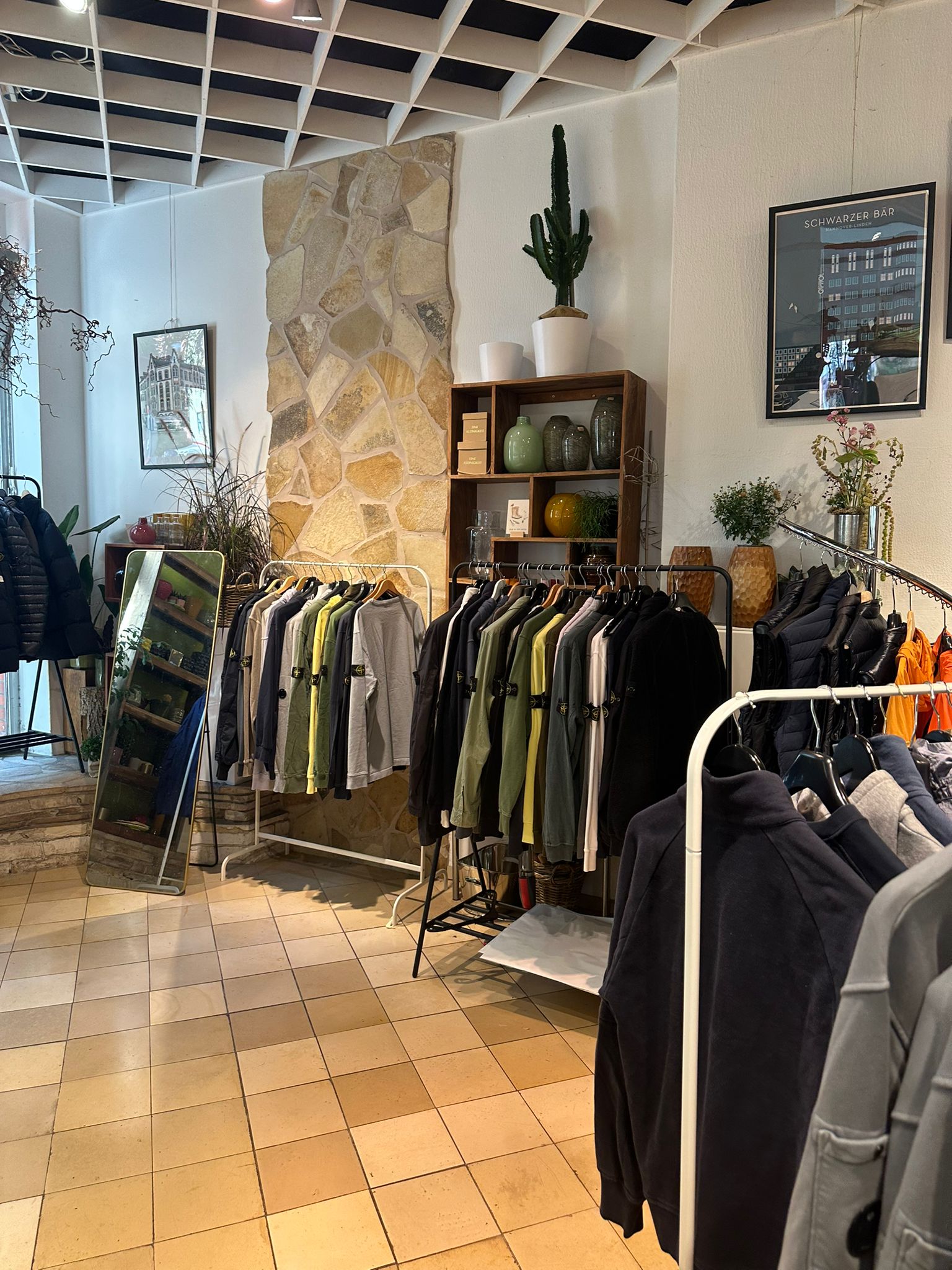 Die beiden Modepartner reisten mit rund 400 bis 600 Kleidungsstücken an – darunter exklusive Stücke von Marken wie Stone Island, Fred Perry oder C.P. Company. Zwischen grünen Pflanzen, floristischen Arrangements und handgefertigten Gefäßen präsentierte sich die hochwertige Casual- und Streetwear in einem Umfeld, das Authentizität und Handwerkskunst vereinte.