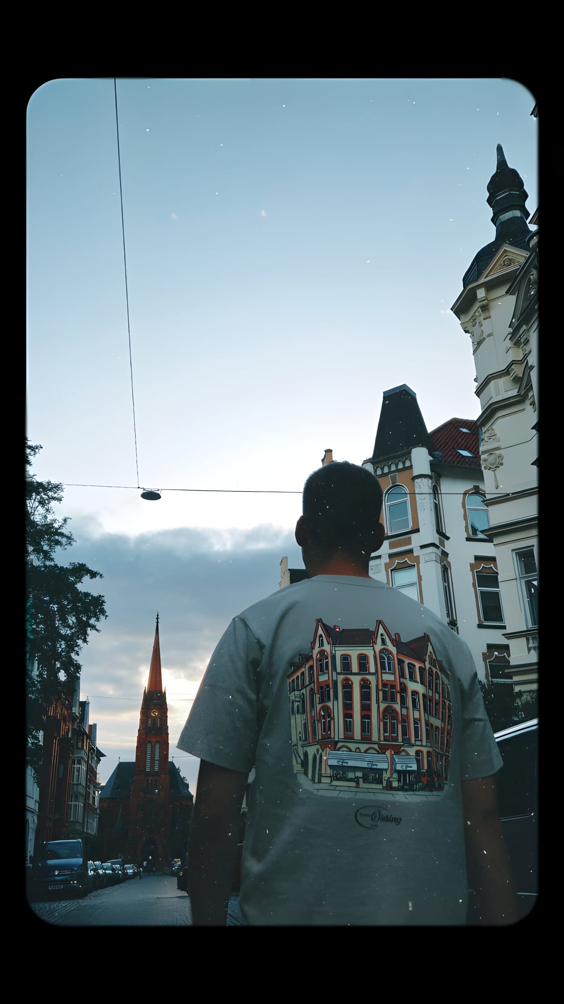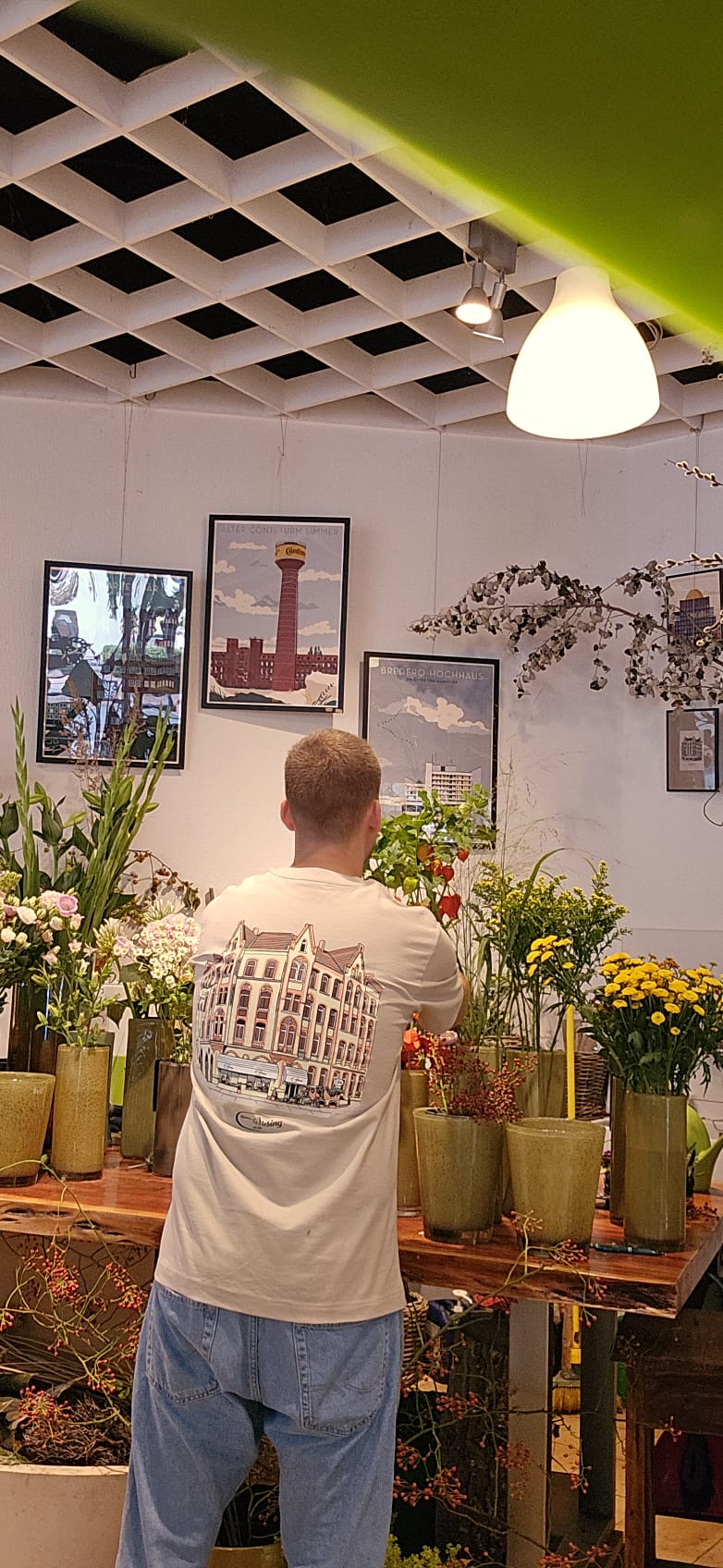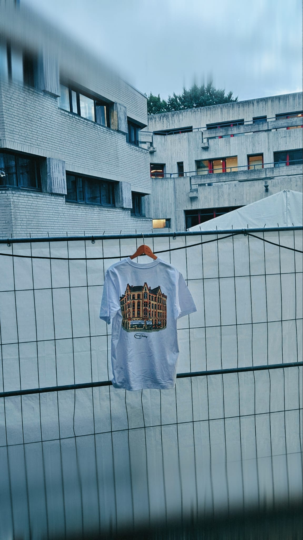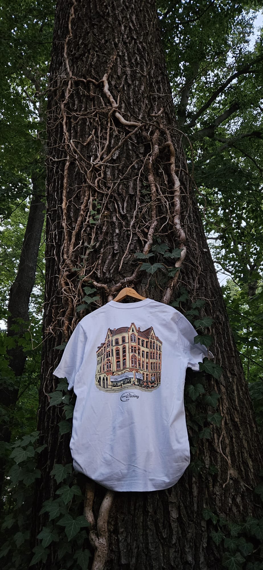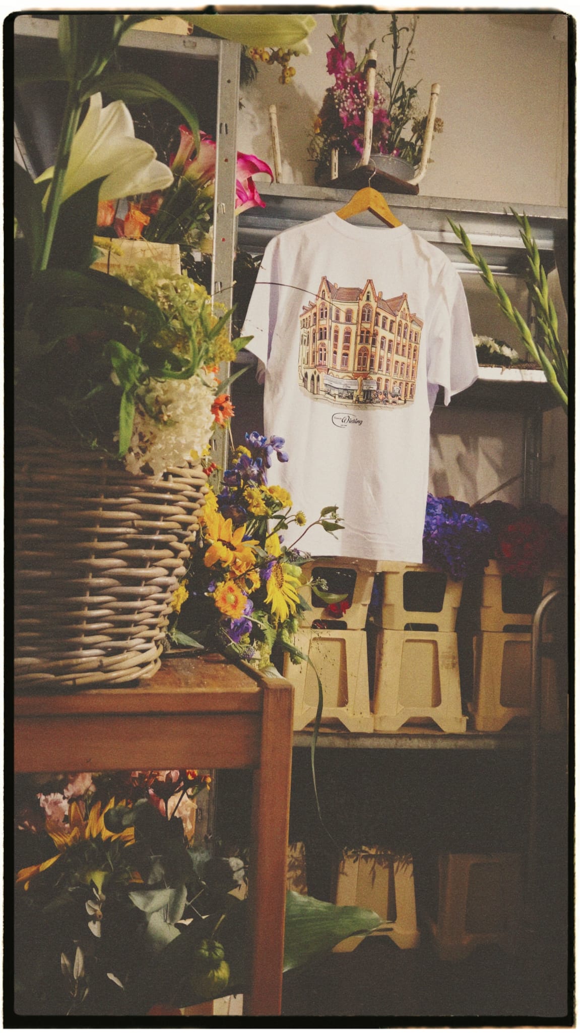 Auf der Rückseite des Shirts findet ihr die Illustration eines ganz besonderen Gebäudes: das Haus, in dem seit 1940 unser Blumenladen steht.